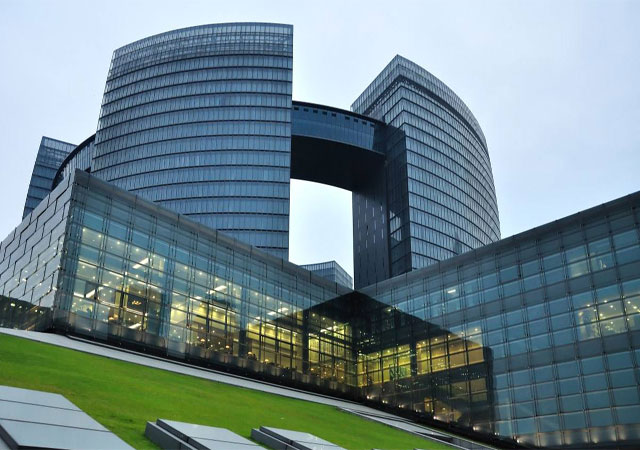 杭州市民中心是杭州市錢(qián)江新城的標(biāo)志性建筑,采用主樓與裙房適度分散的布局方式,市民中心雙塔高320米,建筑用地面積為18萬(wàn)平方米。
